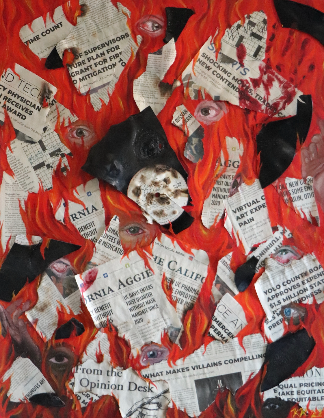 Other achievements in Kennedy’s career as an artist include: 2023 American River College Juried Exhibition - Vice Presidents Award recipient, 2024 Sacramento City College Juried Exhibition participant. They served as the Pence Gallery Educational Programs intern and Curatorial Intern in 2024. Taught mural classes at Blue Line Art Gallery in Roseville, and completed a study abroad program in Italy in 2025.